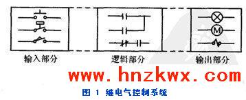 任何一个继电器控制系统,都是由输人部分、逻辑部分和输出部分组成,如图1所示。