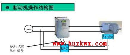 2)使用变频器的运行输出为制动信号
